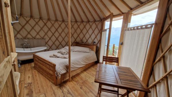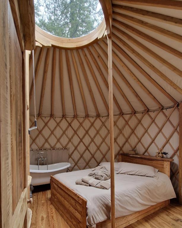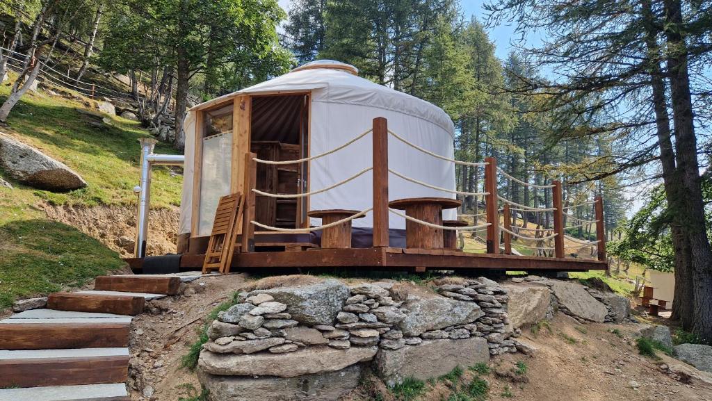 Le nostre Yurte sono pensate per chi cerca silenzio, comfort e autenticità. Ogni struttura ha ingresso indipendente, terrazza privata con affaccio sul Monviso e interni curati con materiali naturali.